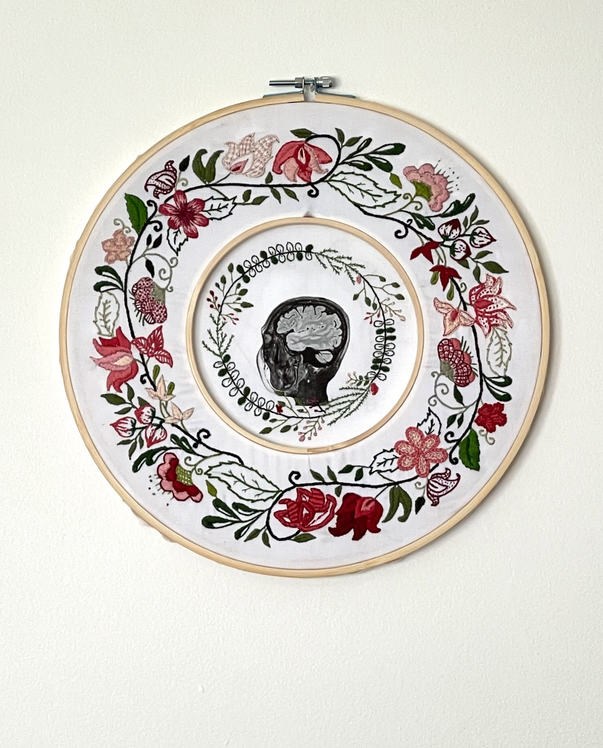 Cotton embroidery on printed cotton