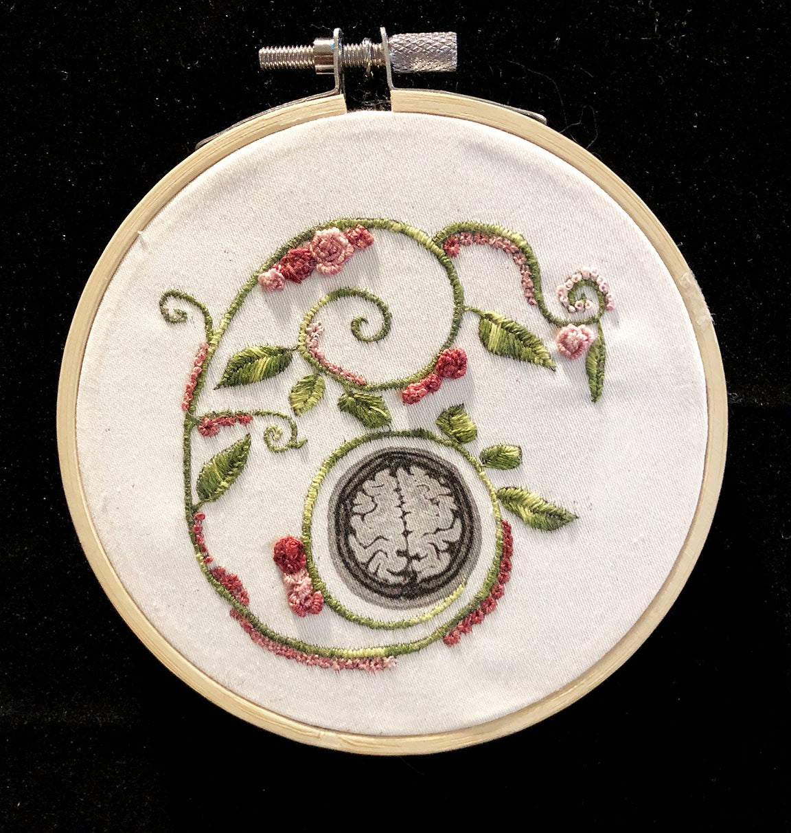 Cotton embroidery on printed cotton